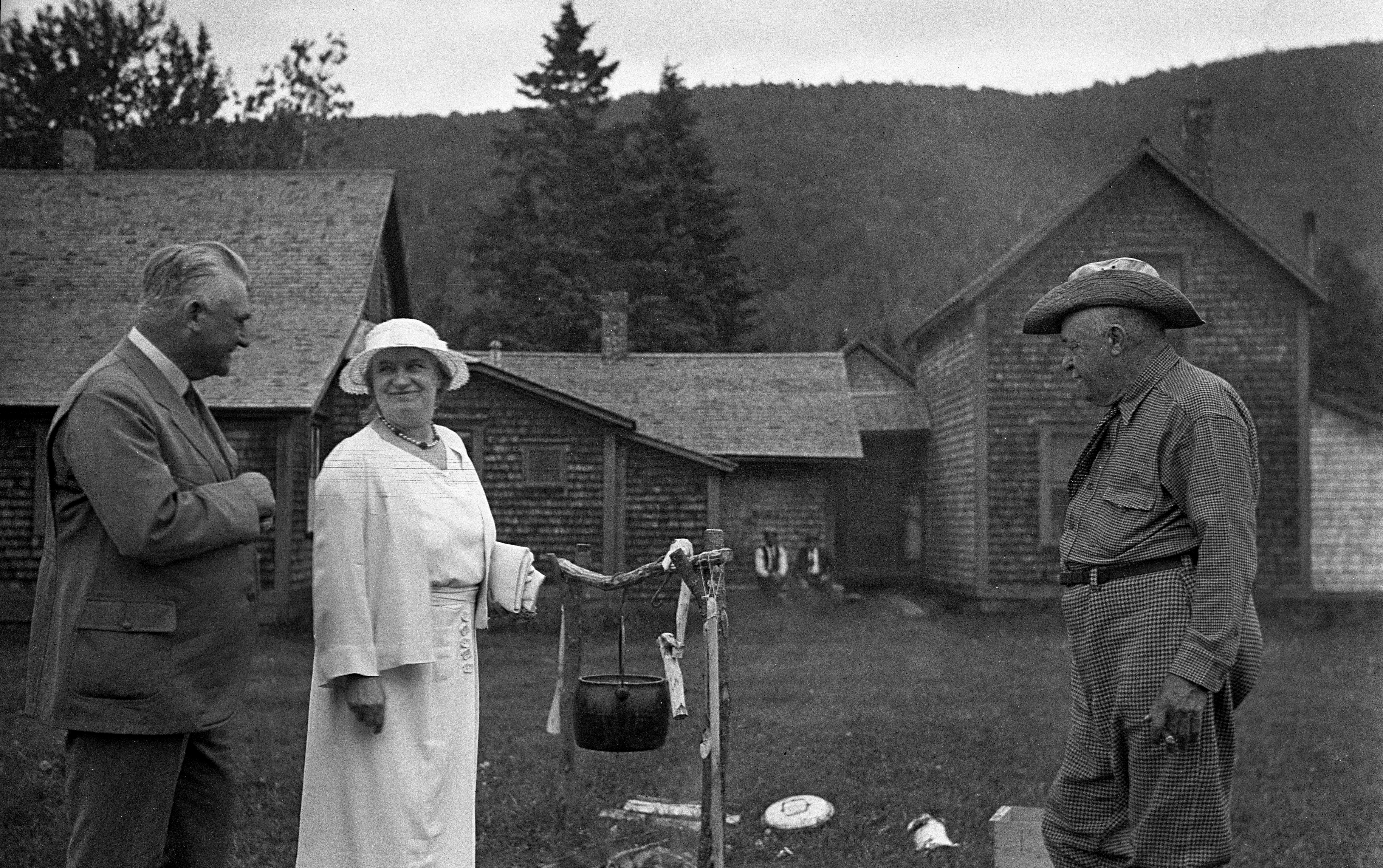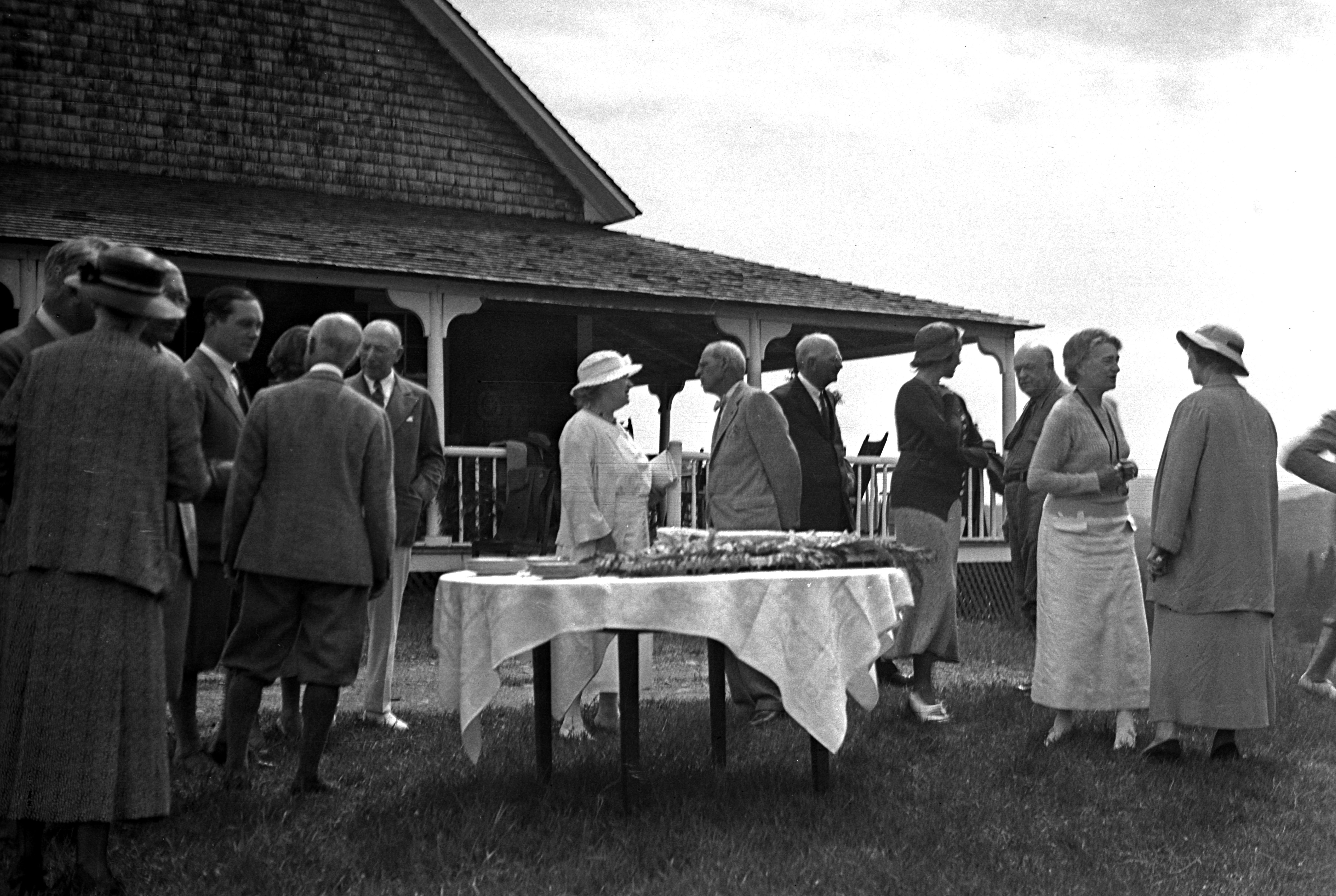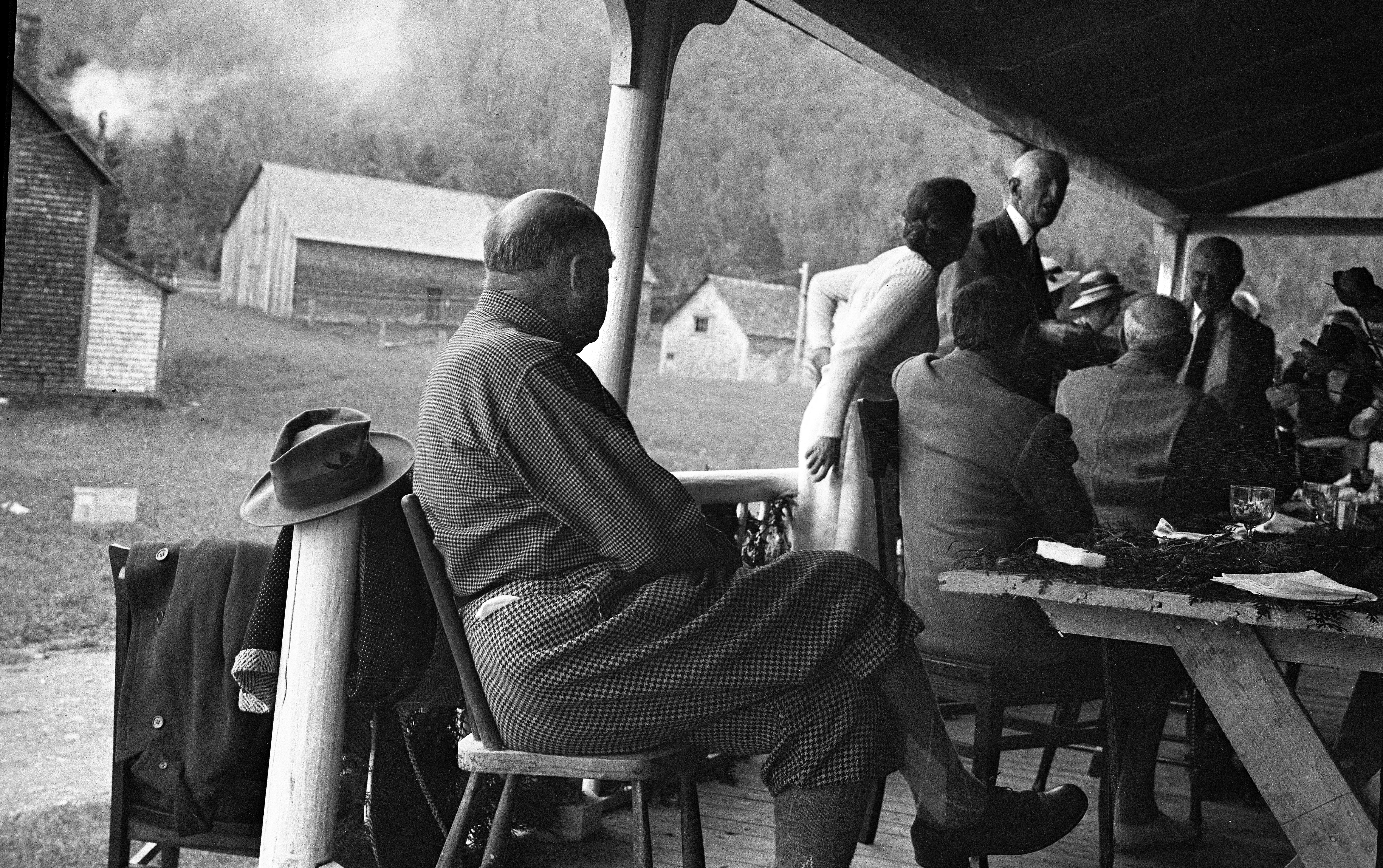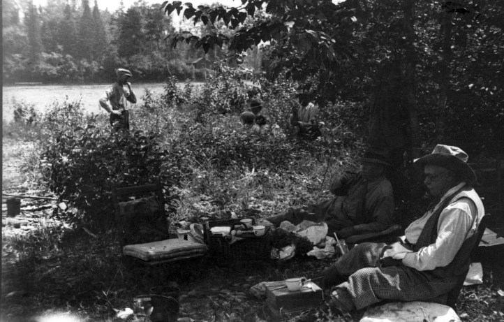 Until recently, there was little more to glean from the old pictures than these two friends, their fishing companions, and families enjoyed the sporting life on and off the river in this remote backwater. That is, until finding a box of the original 3”x4” negatives of the entire Cascapedia photo collection among others. Modern scans produced sharper, cleaner, more detailed images than the album prints, sparking in turn, a renewed interest in Captain Bill. The subsequent discovery of Mershon’s typewritten journal of “Fishing Trips” among his collected papers (online) as well as several years of their correspondence in the University of Michigan’s Bentley Historical Library was literally, icing on the cake. Out of the blue, Mershon’s wonderful, detailed descriptions of days fishing, locations, fish taken, weights, and other background bring the pictures to life, especially one series of images from June 1934 documenting a festive outdoor luncheon celebrating Captain Bill’s “50 years on the river” and a cake with special frosting that was never visible in the original photographs.
