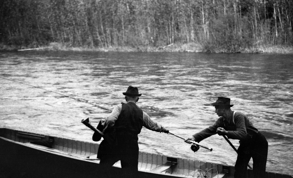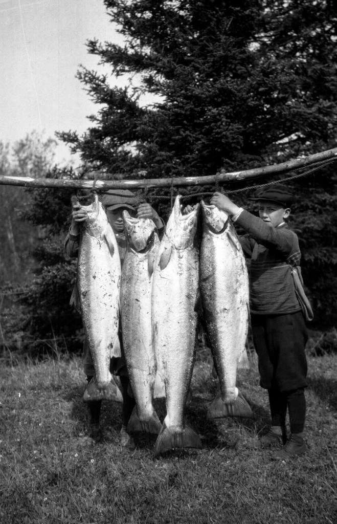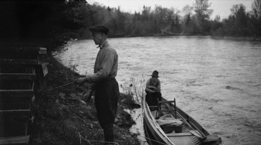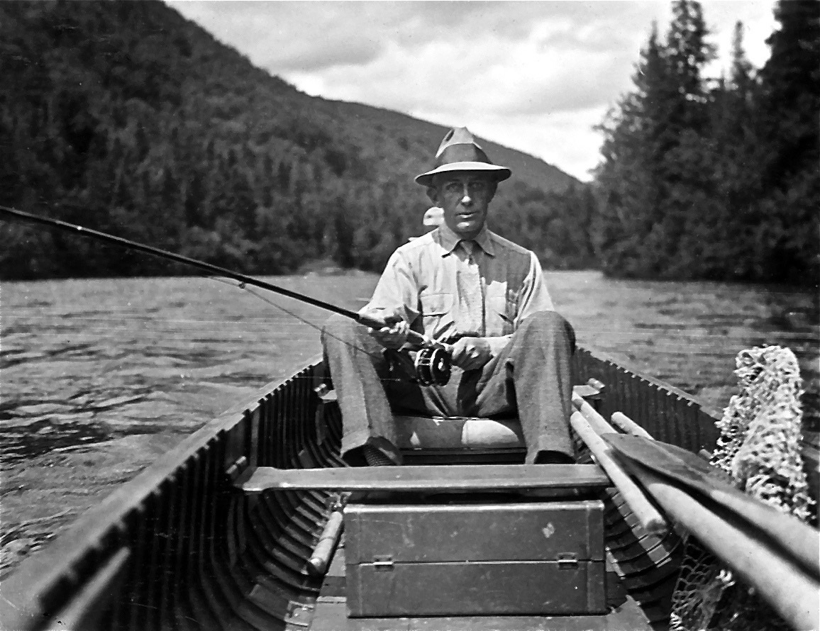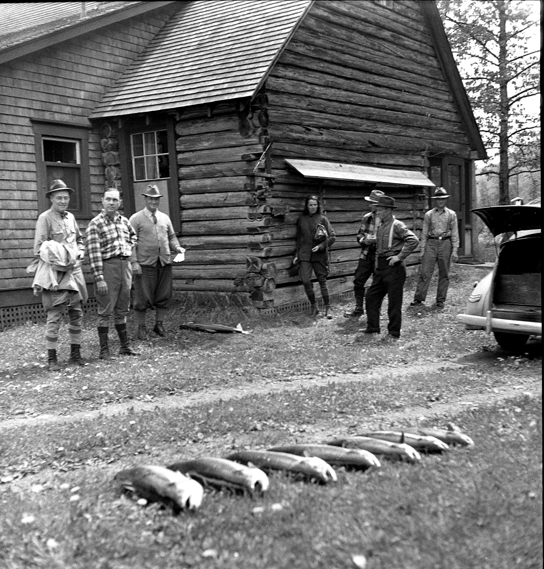 Joseph B. SchlotmanMiddle CampWilliam MershonErnie TurnerTwo guides55# Salmon (hen) caught at Jam Rapids, Grand Cascapedia River, on June 27, 1939 by Edmond Bradley Martin. Length: 49″ Girth 29″ Scale reading by Dr. David L. Belling 4 years in river 4 years at sea Maiden fish