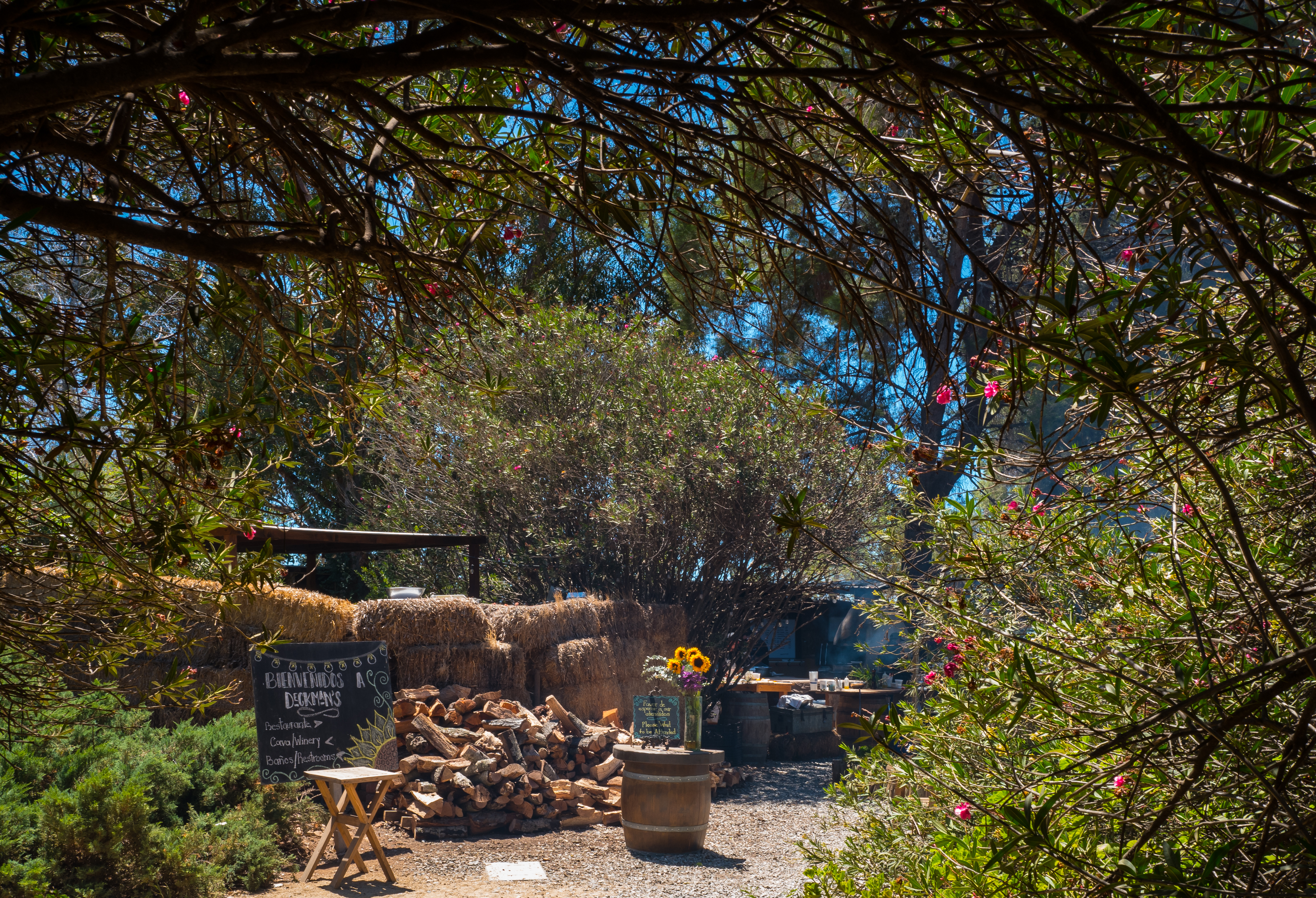 A friendly conversation with a young couple from Mexico City steers us to Deckman’s en el Mogor for a late lunch instead of heading back via the coast at Ensenada and taking the toll road north to Tijuana. Once again, kilometer markers – in this case, No. 85.5 – dictate when to leave the Ruta del Vino and jounce along in clouds of dust and mixed expectations toward Deckman’s, a campestre-style restaurant adjacent to Mogor-Badán’s winery and organic farm. (The winery is open only on weekends).
