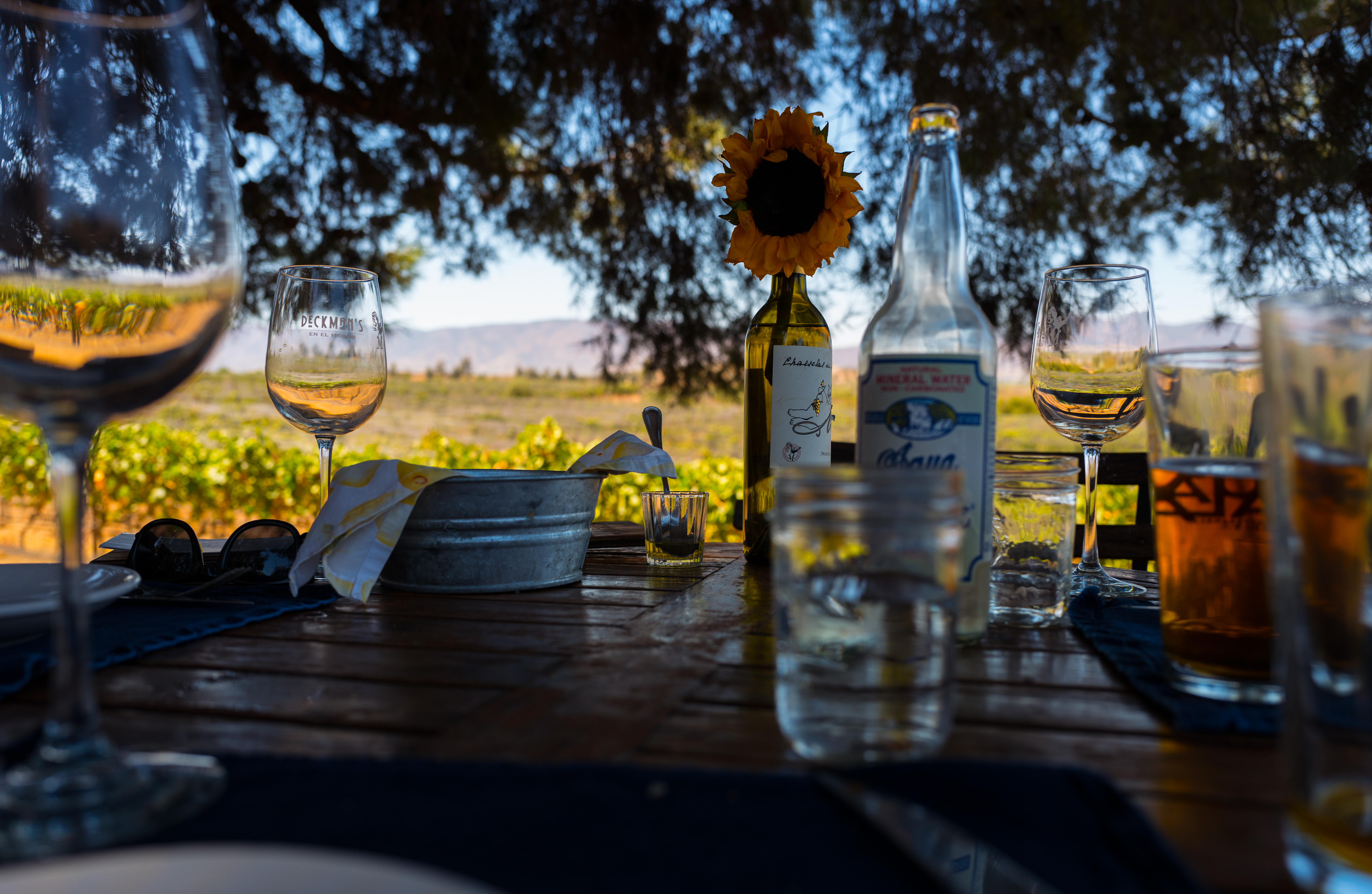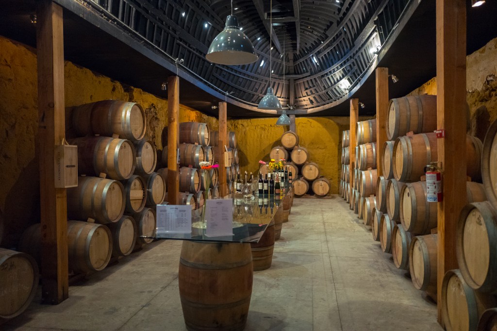 Monte Xanic (pronounced “sha-nik”) is housed in a sleek, multilevel concrete and glass architectural statement set into the side of a mountain and draped with hemp rope. The building, constructed in 2014, has 180-degree views over a small lake, vineyards, and mountains, and comprises an elegant tasting room and balcony, private dining room, corporate offices, winery, bottling plant, and cavernous cask cellar. Monte Xanic’s wines helped put the region on the map and today are a testament of just how far the craft has come in the 30 years since Hans Backhoff, a French-trained biochemist, and a group of investors sought to make quality artisanal wines; his influence has been felt throughout the Valle and beyond though the mood at Monte Xanic on our visit is somber as Backhoff passed away the previous day.